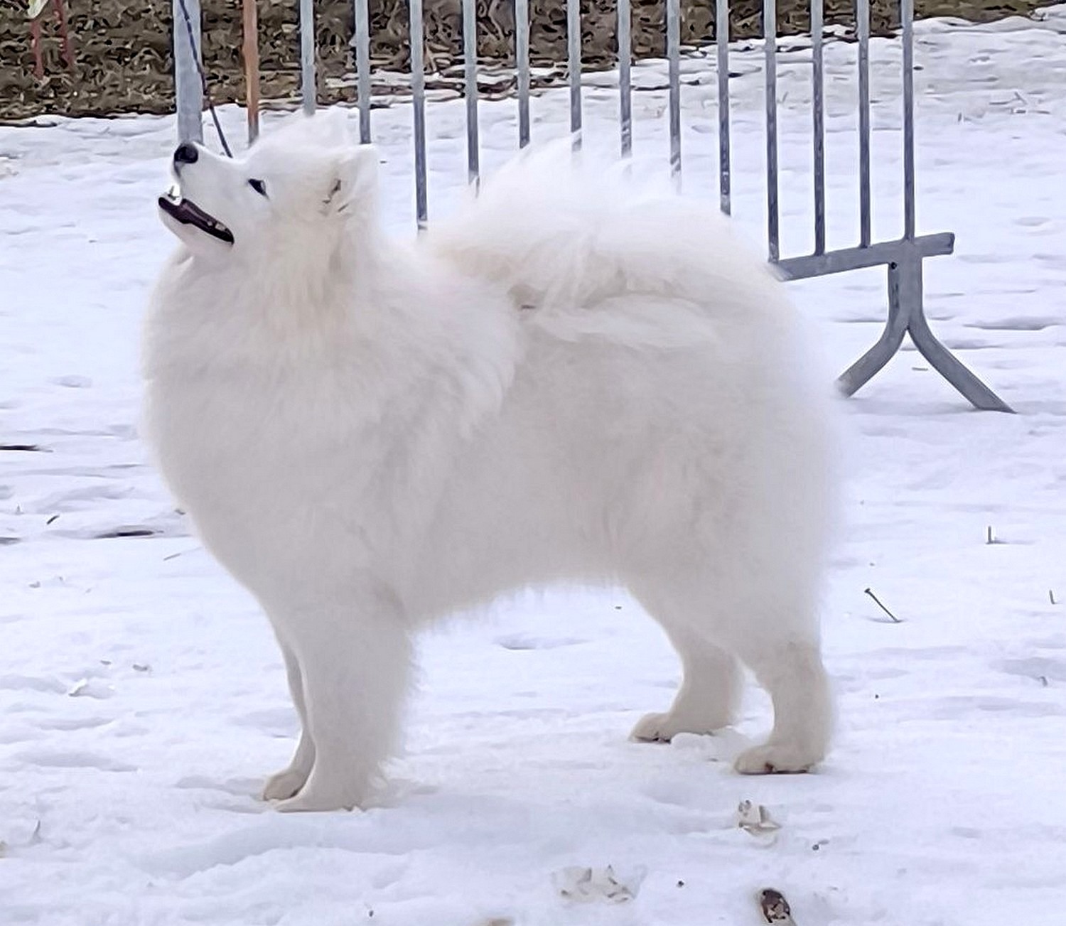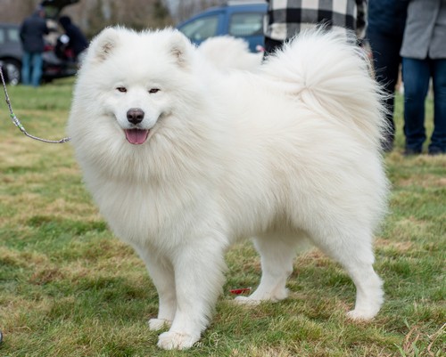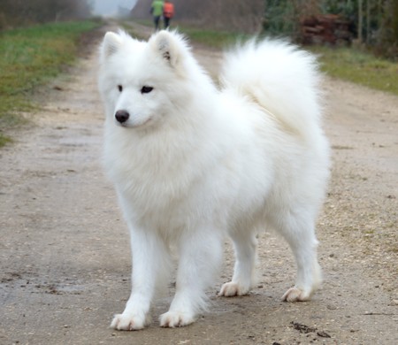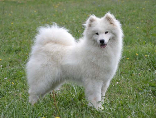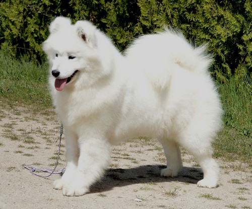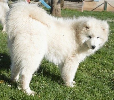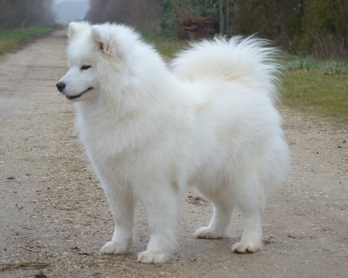 ASPECT GENERAL : Spitz de l’Arctique blanc, élégant, de taille moyenne. Il donne une impression de force, d’endurance, de charme, de souplesse, de dignité et d’assurance. L’expression, ce que l’on appelle le sourire du Samoyède, résulte de la combinaison de la forme et de la position de l’œil et des commissures des lèvres légèrement retroussées. Les caractères sexuels doivent être nettement marqués.