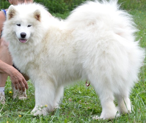 POIL : Fourrure polaire, abondante, épaisse, souple et dense. Le poil du Samoyède est double. Le sous-poil est doux, court et dense. Le poil de couverture est plus long, plus dur et droit. Le poil doit former une collerette autour du cou et des épaules, encadrant la tête, surtout chez les mâles. Sur la tête et la face antérieure des membres, le poil est court et lisse. Sur la partie externe des oreilles, le poil est court, dressé et doux. L’intérieur des oreilles doit être bien fourni de poils. A l’arrière des cuisses, le poil forme une culotte. Dans les espaces interdigitaux doit pousser un poil de protection. La queue doit être couverte d’un poil
