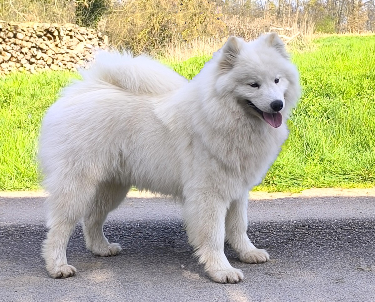 Le Samoyède LOF est un chien nordique à la fois majestueux et proche de l’humain. Issu des grandes étendues sibériennes, il se distingue par son épaisse fourrure blanche, son regard expressif et son tempérament doux. Nous sélectionnons nos Samoyèdes pour leur structure harmonieuse, leur pelage dense et leur caractère sociable. Ce chien de compagnie actif et affectueux demande une présence régulière, un cadre bienveillant et un espace pour s’exprimer. Grâce à une socialisation précoce et une alimentation adaptée, nous préparons nos chiots Samoyèdes à intégrer des foyers responsables.